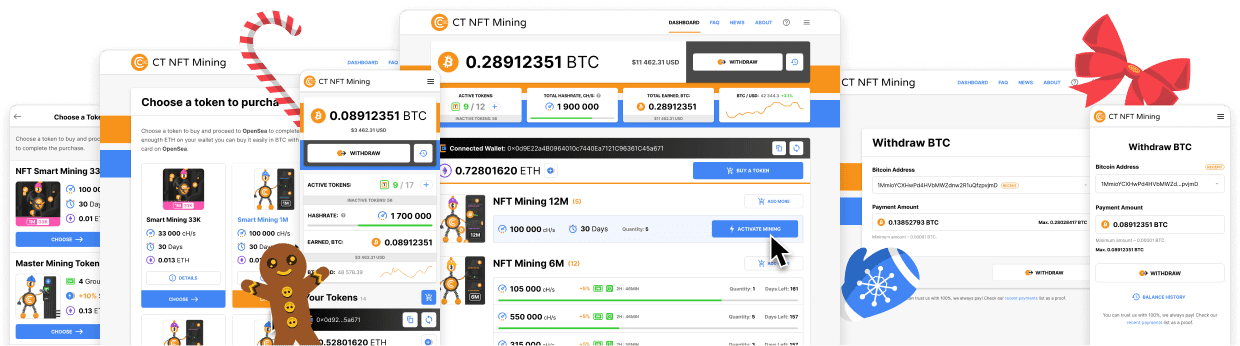 Jeder der 12 Token ist eine Einkommensquelle in BTC für die nächsten zwölf Monate! Das ganze Jahr über bringen sie ihrem Besitzer Bitcoins in CT NFT. Das bedeutet, dass die Gewinner entscheiden müssen, was sie mit dem magischen NFT machen wollen: Er kann jederzeit verkauft werden, auch nachdem er schon Monate genutzt wurde.